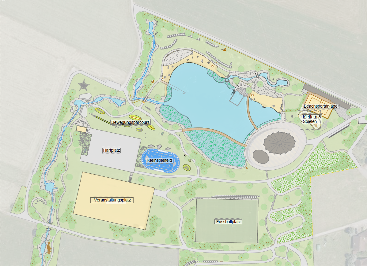 Der grosse Platz kann Dank des Schotterrasens nicht nur für Festanlässe genutzt werden, sondern auch für sportliche Freizeit- und Erholungstätigkeiten.